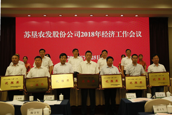 會(huì)議期間,蘇墾農(nóng)發(fā)黃海分公司、蘇墾農(nóng)發(fā)東辛分公司、蘇墾農(nóng)發(fā)臨海分公司與大華種業(yè)集團(tuán)等四家單位作了交流發(fā)言。會(huì)議隆重表彰了一批上半年工作業(yè)績突出的先進(jìn)集體,授予7家分公司2018年度“三夏”工作優(yōu)勝獎(jiǎng)、6家分公司2018年度拓展基地“三夏”工作優(yōu)勝獎(jiǎng)、3家分公司2018年度小麥高產(chǎn)獎(jiǎng)、10家分公司2018年度夏熟效益獎(jiǎng)、4家分公司2018年度拓展基地夏熟效益獎(jiǎng)。7月24日晚,還專題召開蘇墾農(nóng)服工作推進(jìn)會(huì),就下一階段農(nóng)業(yè)社會(huì)化服務(wù)體系建設(shè)工作進(jìn)行了部署要求。