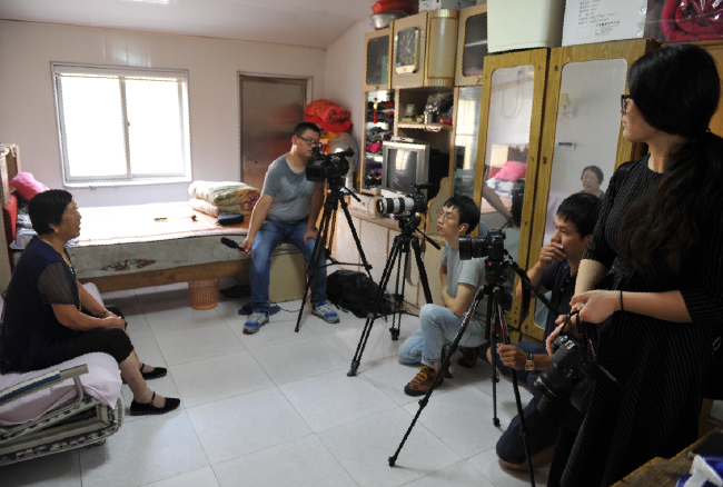 當(dāng)天下午澎湃新聞采訪組通過采訪老人的大女兒唐寶南,五女兒唐秀蘭兩人,詳細(xì)地向她們了解了老人的以前的工作經(jīng)歷和現(xiàn)在的生活起居以及健康長壽情況,計劃明天用一天的時間,深入挖掘百歲老人的日常起居及家庭成員的生活情況。圖為澎湃新聞在淮海農(nóng)建四師歷史陳列館和張瑞瑞老人家中采訪時的鏡頭。