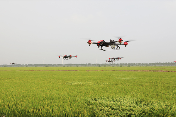 “保障豐收”無人機(jī)植保演示。