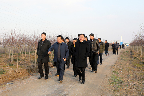 李朝欽一行先后考察了糧食風(fēng)干倉、30大隊(duì)的麥田、海棠科技產(chǎn)業(yè)園、漁場。