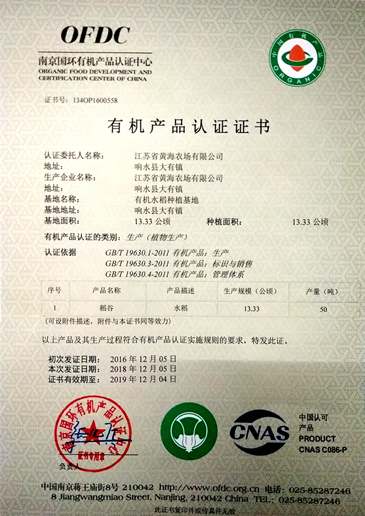 近日,黃海農(nóng)場有限公司欣喜的收到中國綠色食品發(fā)展中心頒發(fā)的青花菜(西蘭花)綠色食品證書和中國有機(jī)產(chǎn)品認(rèn)證機(jī)構(gòu)頒發(fā)的有機(jī)產(chǎn)品認(rèn)證證書。至此,黃海已獲得10.1萬畝綠色原料(水稻)標(biāo)準(zhǔn)化生產(chǎn)基地、綠色青花菜和有機(jī)水稻基地三項(xiàng)證書,品牌建設(shè)再添新成果。