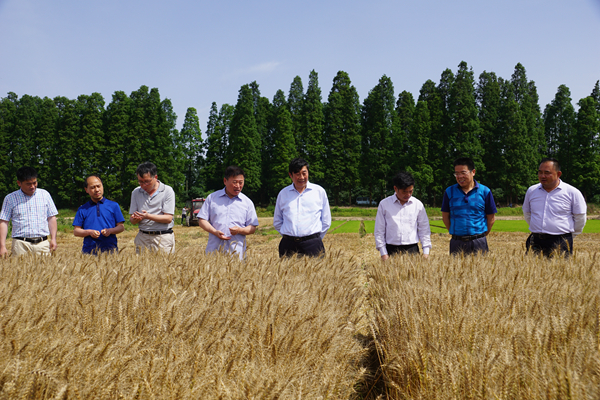 在"華麥5號"高產(chǎn)創(chuàng)建示范田,胡兆輝對該品種在新洋測產(chǎn)733.7公斤每畝再次刷新江蘇省小麥單產(chǎn)歷史最高紀(jì)錄給予了高度贊賞。他指出,今年小麥穩(wěn)產(chǎn)高產(chǎn)形勢好,后期要時刻關(guān)注突發(fā)性天氣變化,做好應(yīng)對防范保障措施,力保收割沖刺階段平穩(wěn)高效過渡,確保"三夏"各項工作有序開展。