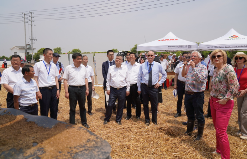 演出結(jié)束后,與會領(lǐng)導(dǎo)和嘉賓共同觀摩了中德示范園田間先進農(nóng)機具作業(yè)展示。