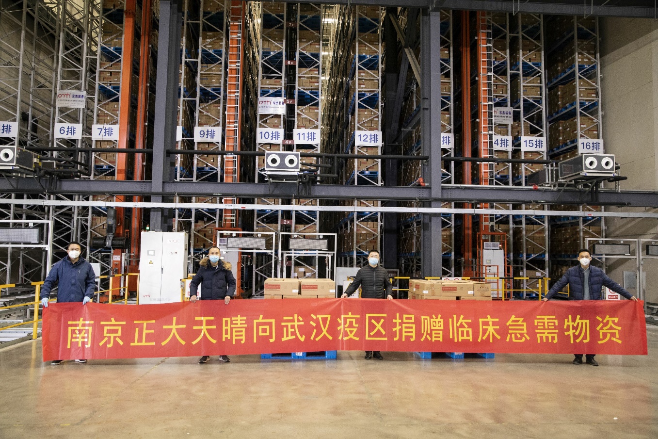 圖為南京正大天晴公司向武漢捐贈(zèng)醫(yī)療物資。