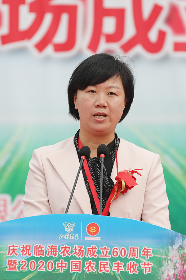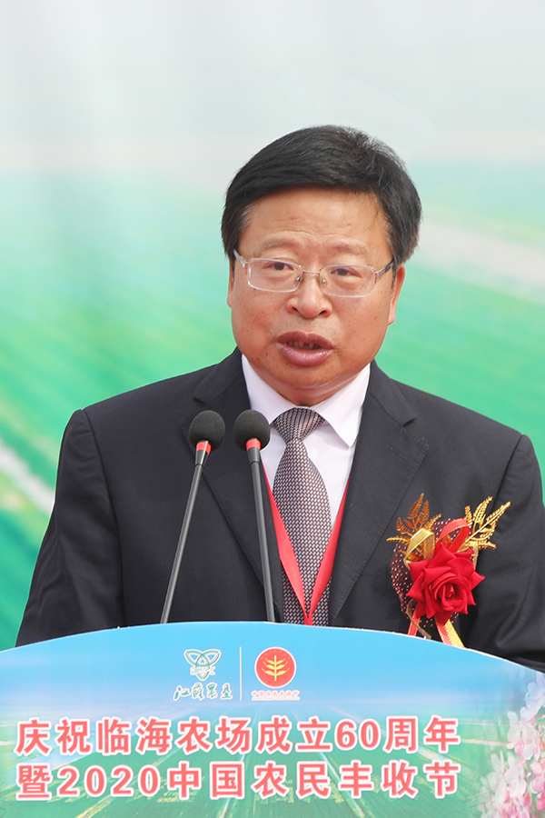 江蘇省農(nóng)墾集團公司黨委副書記、總經(jīng)理胡兆輝代表江蘇省農(nóng)墾集團公司黨委向臨海農(nóng)場公司建場60周年表示熱烈祝賀。他簡述了近年來江蘇農(nóng)墾的發(fā)展理念和取得全國農(nóng)墾利潤總額第一名的佳績,高度贊揚了臨海農(nóng)場公司建場六十周年來各項事業(yè)的發(fā)展成就。胡兆輝指出,江蘇農(nóng)墾將以“三個一”體系建設(shè)為抓手,在深化改革中不斷發(fā)展,努力打造中國現(xiàn)代農(nóng)業(yè)航母的“江蘇號”。他祝愿臨海明天更加燦爛輝煌,希望臨海人進一步解放思想,弘揚農(nóng)墾精神、社會主義先進文化,加強與地方合作,科學管理、創(chuàng)新發(fā)展、團結(jié)拼搏,為建設(shè)“經(jīng)濟強、產(chǎn)業(yè)優(yōu)、職工富、生態(tài)美、農(nóng)場興”的新農(nóng)場不懈奮斗,為江蘇農(nóng)墾建設(shè)發(fā)展做出更大貢獻!