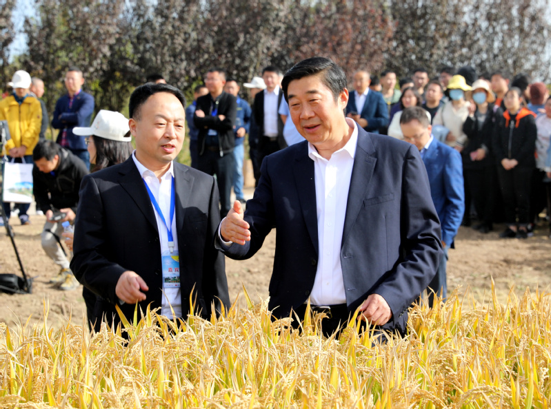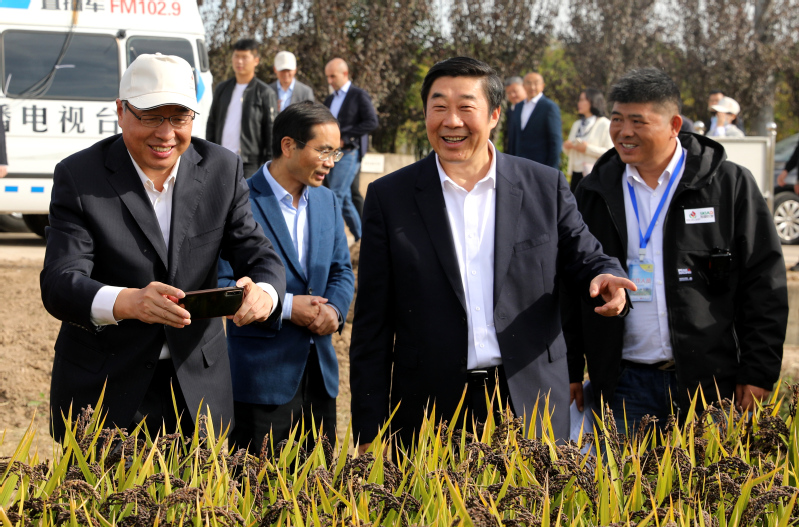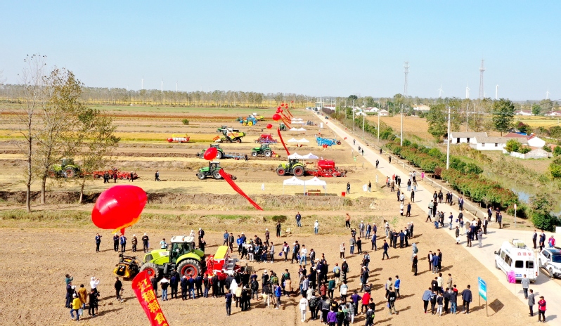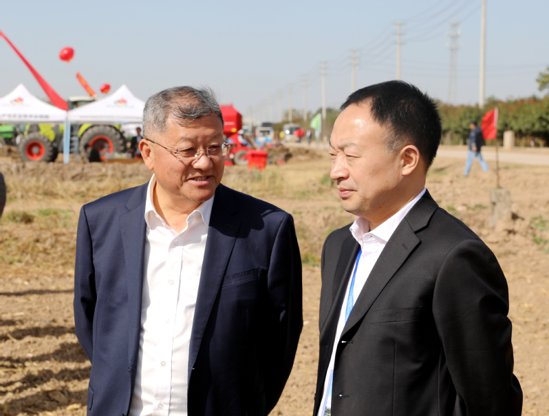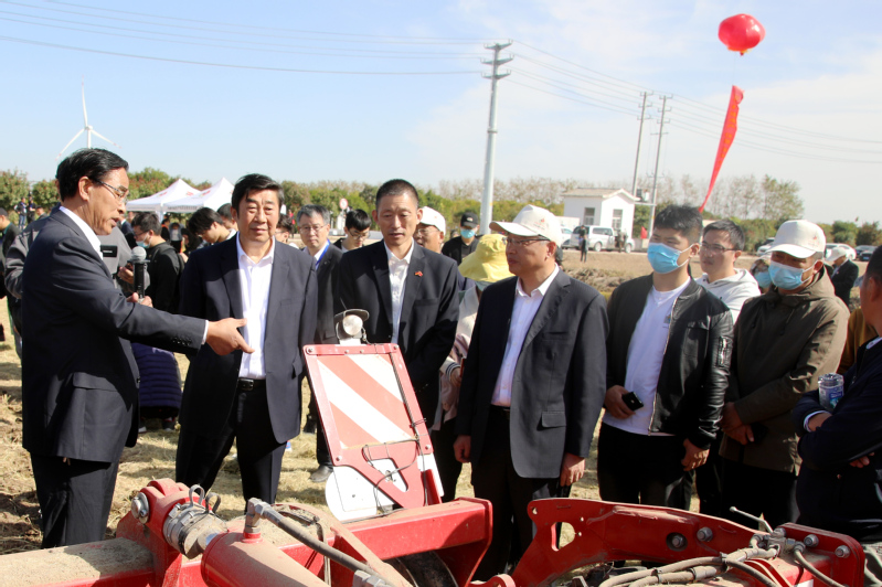 與會(huì)領(lǐng)導(dǎo)和嘉賓在示范園田間共同觀摩了先進(jìn)農(nóng)機(jī)具作業(yè)展示。
