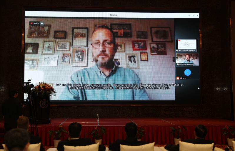 示范園德方項(xiàng)目負(fù)責(zé)人艾列克斯以“線上”錄播形式發(fā)布德方作物栽培建議“綠皮書(shū)”—一本給農(nóng)業(yè)生產(chǎn)經(jīng)理的顧問(wèn)手冊(cè)。