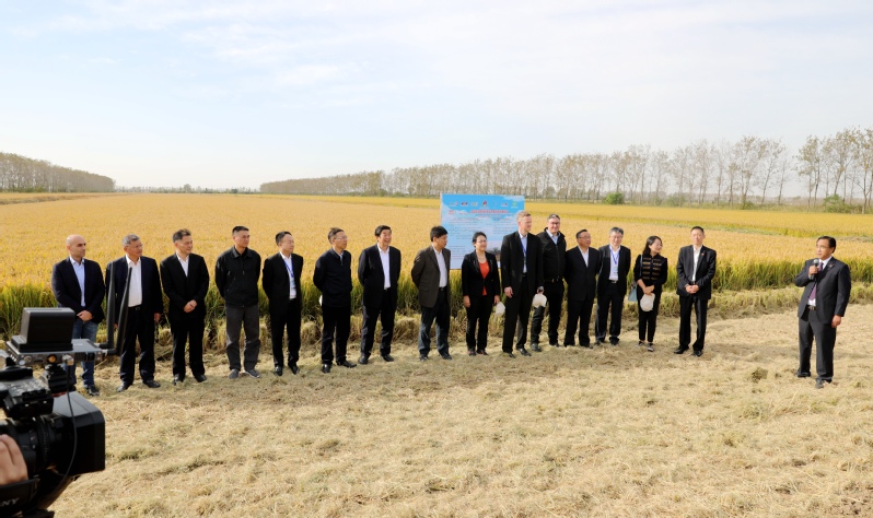 金秋十月,稻谷飄香。10月21日至22日,中德作物生產(chǎn)與農(nóng)業(yè)技術(shù)示范園第六屆“田間日”活動(dòng)在江蘇省黃海農(nóng)場(chǎng)有限公司舉行。省農(nóng)墾集團(tuán)公司總經(jīng)理、省農(nóng)墾農(nóng)業(yè)發(fā)展股份公司董事長(zhǎng)胡兆輝,省農(nóng)業(yè)農(nóng)村廳副廳長(zhǎng)沈毅,中國(guó)農(nóng)業(yè)農(nóng)村部對(duì)外經(jīng)濟(jì)合作中心副主任胡延安、中國(guó)農(nóng)業(yè)農(nóng)村部農(nóng)機(jī)鑒定總站、農(nóng)機(jī)推廣總站副站長(zhǎng)儀坤秀出席并分別致辭。德國(guó)聯(lián)邦食品與農(nóng)業(yè)部國(guó)際項(xiàng)目雙邊合作司司長(zhǎng)布魯諾?霍夫斯塔特通過(guò)“5G云在線”致辭。黃海農(nóng)場(chǎng)公司黨委書(shū)記、蘇墾農(nóng)發(fā)黃海分公司總經(jīng)理、中德示范園中方主任賀在銳作項(xiàng)目二期主要成果介紹。出席此次“田間日”的嘉賓還有:德意志聯(lián)邦共和國(guó)駐華大使館經(jīng)濟(jì)總處官員托馬斯?吉瑟,農(nóng)業(yè)農(nóng)村部南京農(nóng)業(yè)機(jī)械化研究所所長(zhǎng)陳巧敏、江蘇農(nóng)林職業(yè)技術(shù)學(xué)院校長(zhǎng)簡(jiǎn)祖平、蘇州農(nóng)業(yè)職業(yè)技術(shù)學(xué)院院長(zhǎng)傅兵、省農(nóng)墾集團(tuán)公司副總經(jīng)理劉耀武、安徽省農(nóng)墾集團(tuán)公司總農(nóng)藝師姚禮發(fā)、省農(nóng)業(yè)農(nóng)村廳農(nóng)業(yè)發(fā)展處處長(zhǎng)孫俊華、省農(nóng)墾農(nóng)業(yè)發(fā)展股份公司總裁朱亞?wèn)|、響水縣人民政府縣長(zhǎng)郭超、濱??h人民政府副縣長(zhǎng)江強(qiáng)、德國(guó)農(nóng)業(yè)協(xié)會(huì)中國(guó)首席代表張莉、省農(nóng)墾農(nóng)業(yè)發(fā)展股份公司副總裁陳培紅、黃海農(nóng)場(chǎng)公司董事長(zhǎng)李衛(wèi)東以及9家項(xiàng)目合作企業(yè)代表、國(guó)內(nèi)部分政府農(nóng)業(yè)系統(tǒng)官員與省外農(nóng)墾領(lǐng)導(dǎo),科研院所代表、農(nóng)業(yè)高校代表,蘇墾農(nóng)發(fā)股份公司相關(guān)領(lǐng)導(dǎo)和黃海領(lǐng)導(dǎo)班子成員等共計(jì)150余人。賀在銳、張莉分別主持。