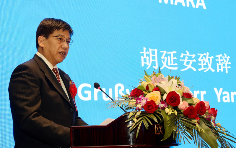 胡延安在致辭中代表中國(guó)農(nóng)業(yè)農(nóng)村部對(duì)活動(dòng)的舉行表示熱烈的祝賀!他說(shuō),經(jīng)過(guò)5年多時(shí)間,示范園在參與各方的共同努力下,各項(xiàng)工作取得了很大進(jìn)展,推動(dòng)了現(xiàn)代農(nóng)業(yè)可持續(xù)發(fā)展。中國(guó)農(nóng)業(yè)農(nóng)村部將一如既往地支持中德農(nóng)業(yè)示范園項(xiàng)目建設(shè)。希望中德雙方進(jìn)一步增進(jìn)了解,擴(kuò)大合作,互利共贏,共同為中國(guó)農(nóng)業(yè)可持續(xù)發(fā)展、構(gòu)建人類命運(yùn)共同體做出更多貢獻(xiàn)。