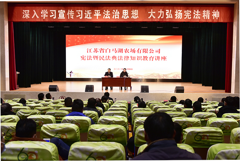 12月4日上午,在我國(guó)第七個(gè)國(guó)家憲法日和第三個(gè)“憲法宣傳周”之際,白馬湖農(nóng)場(chǎng)公司圍繞“深入學(xué)習(xí)貫徹習(xí)近平法治思想 大力弘揚(yáng)憲法精神”這一主題,通過(guò)舉辦憲法暨民法典法律知識(shí)教育講座,同時(shí)啟動(dòng)開(kāi)展“法治宣傳月”和“憲法宣傳周”活動(dòng),深刻宣傳領(lǐng)會(huì)黨的十九屆五中全會(huì)精神,深化了解把握全面依法治國(guó)的重大意義。