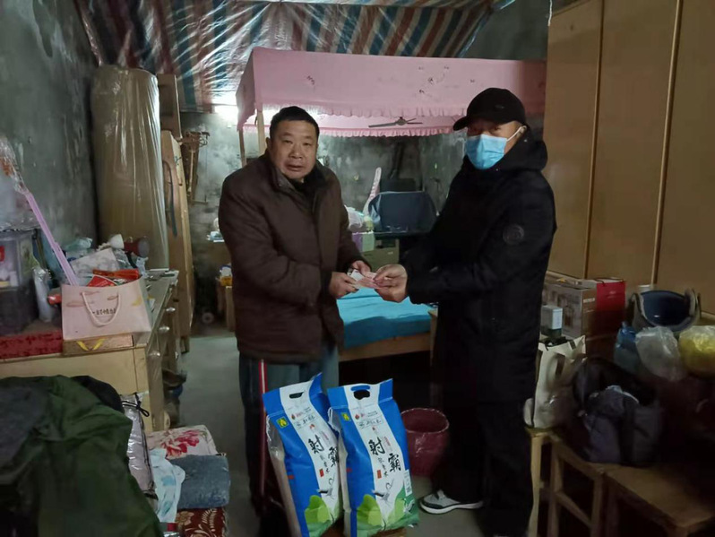 “李懷兵,你好!我給你帶來了兩袋米和500元錢,這是我代表陸同聯(lián)來慰問你的心意,務(wù)必請你收下!”1月26日上午8時許,淮海農(nóng)場社區(qū)城西居委會主任臧成龍攜帶4袋大米和1000元現(xiàn)金,先后來到城西振興小區(qū)困難居民李懷兵和嚴建明的家中,應(yīng)邀對這兩戶貧困戶開展節(jié)前獻愛心送溫暖活動,為他們送上節(jié)日的祝福和美好的祝愿。