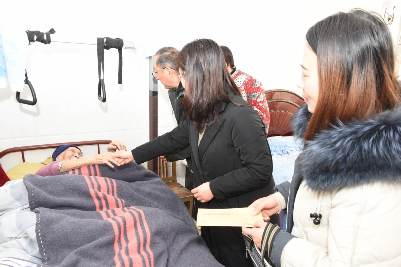 2月3日上午,淮海農(nóng)場工會和社區(qū)老齡委負責人及部分農(nóng)場社區(qū)居委會等人員一起,深入轄區(qū)走訪看望農(nóng)場健在的3位百歲老人,并為老人送上慰問金和節(jié)日的問候。