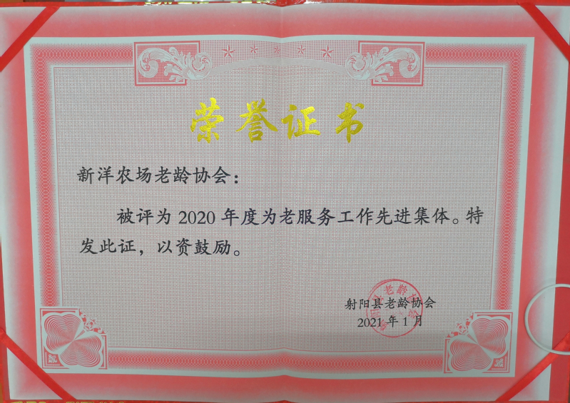新洋居家養(yǎng)老服務(wù)中心始終以“以老服務(wù)”為宗旨,從老年人的日常生活和精神需求出發(fā),全力解決老年人的緊急救援、日常照料、精神慰藉等諸多服務(wù),得到了場域老人的一致好評(píng),也贏得了上級(jí)相關(guān)部門的充分肯定。在2020年度射陽縣為老服務(wù)工作表彰大會(huì)上,新洋榮獲“2020年度為老服務(wù)先進(jìn)集體”稱號(hào)。老年工作得到了縣老齡協(xié)會(huì)的特別表揚(yáng)。