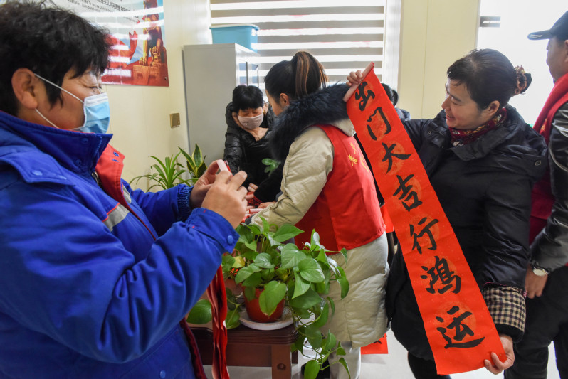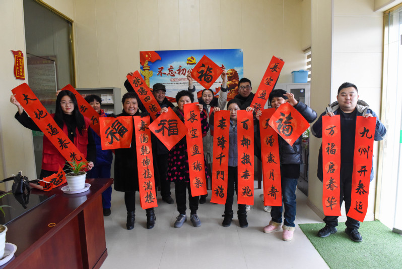 在節(jié)日期間,淮海書(shū)法協(xié)會(huì)會(huì)長(zhǎng)黃建兵、老黨員林耀國(guó)等志愿者們,通過(guò)將300多幅預(yù)先寫(xiě)好的春聯(lián)和福字,與農(nóng)場(chǎng)公司的黨員志愿者們,一一送到轄區(qū)部分黨員和職工居民家中,讓大家感受到節(jié)日的喜慶氛圍。