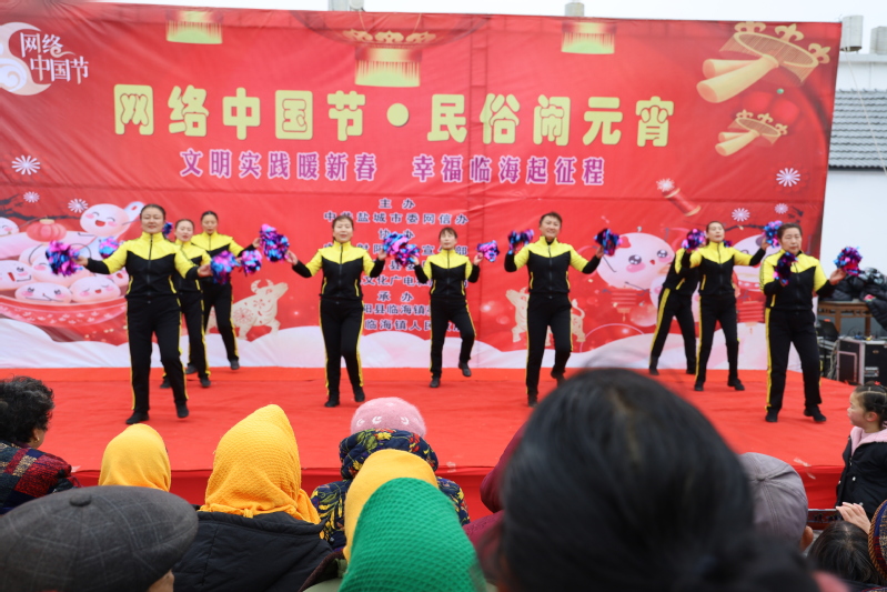 2月26日下午,射陽縣臨海鎮(zhèn)金海村新型社區(qū)健身廣場上舉辦“網(wǎng)絡中國節(jié),民俗鬧元宵”活動,淮海農(nóng)場社區(qū)情之韻廣場舞隊的9名隊員,也以《火火的中國火火的時代》參加了由鹽城市委網(wǎng)信辦主辦,射陽縣委宣傳部、射陽縣委網(wǎng)信辦、射陽縣文廣旅局協(xié)辦,射陽縣臨海鎮(zhèn)黨委、政府承辦的活動?;顒游嗽撴?zhèn)眾多的群眾現(xiàn)場觀看,同時活動的主辦方在開通網(wǎng)上直播,當天觀看人數(shù)達4.14萬人。