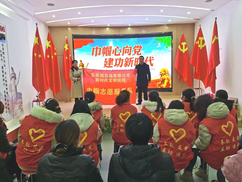 “我志愿成為一名光榮的巾幗志愿者……”3月6日,寶應湖農(nóng)場公司新時代文明實踐所,42名婦女代表面對隊旗莊嚴宣誓,這是農(nóng)場公司三八婦女節(jié)主題活動的一個場景。