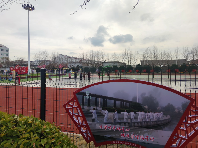 淮海遠(yuǎn)離縣域小城鎮(zhèn),有著自己獨(dú)立于縣城外的獨(dú)特優(yōu)勢(shì),農(nóng)場(chǎng)在小城鎮(zhèn)的建設(shè)過程中,一直以來將全民健身活動(dòng)的空間納入到農(nóng)場(chǎng)黨委的議事日程。為此,農(nóng)場(chǎng)在建場(chǎng)四十周年那年創(chuàng)建了文化廣場(chǎng)的基礎(chǔ)上,在2010年又建成了一萬平方米的職工休閑體育運(yùn)動(dòng)廣場(chǎng),建成了淮海公園,并在職工居民活躍的處所,增設(shè)了適合體育運(yùn)動(dòng)的健身平臺(tái),讓職工居民就近就能有廣場(chǎng)舞、健身操的運(yùn)動(dòng)場(chǎng)地,有適合籃球、羽毛球、乒乓球及健身器材的運(yùn)動(dòng)場(chǎng)所,讓不同區(qū)域的人們可以在因地制宜、靈活多樣地開展全民健身活動(dòng)。