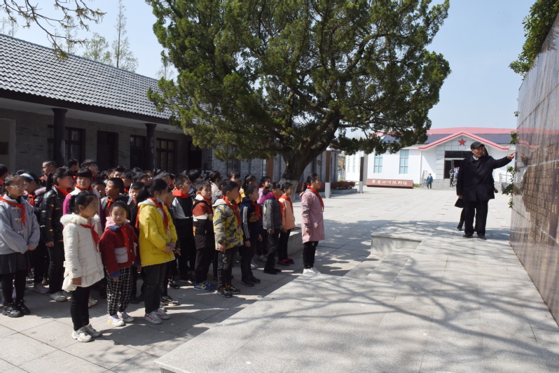 “我們給學(xué)生們就是要多講講過去黨的歷史,多說說農(nóng)場的建場史,讓他們在實境教育和感悟中,提升思想境界,從而接過淮海人的接力棒,一棒一棒向下傳,確保農(nóng)場的事業(yè)后繼有人?!焙I硎尽D為胡福生老人在給學(xué)生們講傳統(tǒng)時的鏡頭。