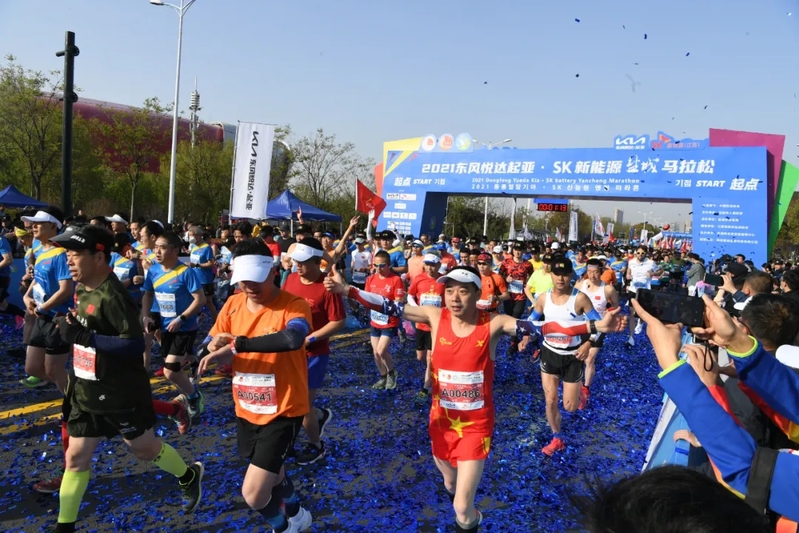 4月18日上午7點(diǎn)30分,2021東風(fēng)悅達(dá)起亞·SK新能源鹽城馬拉松賽在鹽南體育中心鳴槍開跑。淮海農(nóng)場有限公司20名選手與來自全國各地的1萬5千多名跑友齊聚鹽城,在美麗賽道上激情奔跑,暢享長跑帶來的歡樂和精彩。