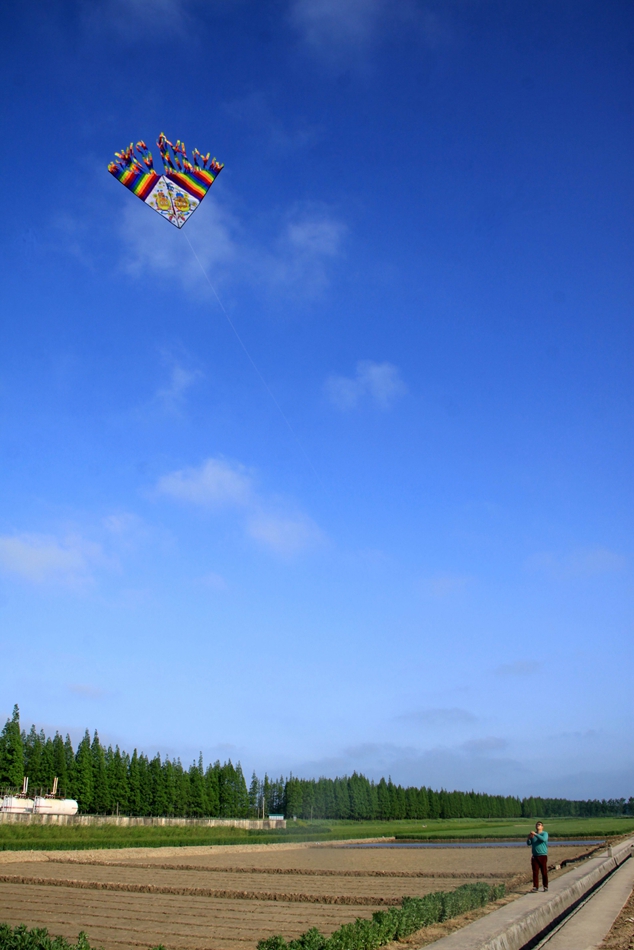 放風箏是一項對身心健康十分有益的戶外活動,是人們十分喜愛的活動。新洋天地廣闊,是放飛風箏最理想的,微風習習,人們走向田野放飛風箏,但見各種色彩各種形狀的風箏在空中飄飄蕩蕩,是新洋一道美麗的風景。孩提時代,場部銀行有一位馮姓工作人員年年在春暖花開的季節(jié)放飛風箏,那風箏放得又高又遠,抬頭望去,那風箏猶如一只小小的胡蝶在高空中飛舞,煞是好看。我和小伙伴非常羨慕,也學著用蘆柴和報紙扎起了風箏,由于不懂風箏的平衡原理,一開始扎的風箏還沒飛多高,就一頭栽了下來。我和小伙伴不斷摸索,風箏總算飛翔起來,我們拉著風箏線在田野里奔跑著,歡呼著,十分地興奮,但我們的風箏總是沒有馮姓工作人員放的風箏飛得高、飛得遠。