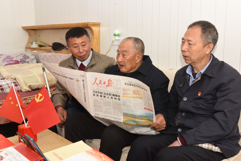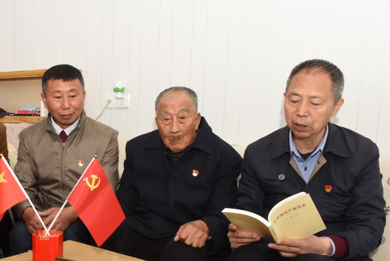 這堂特殊的黨課,讓家庭黨員們?cè)僖淮?/span>感受到這位老共產(chǎn)黨員的初心和使命,同時(shí)后輩的黨員也在向老人送、讀黨史書籍、講述新中國的快速發(fā)展和淮海農(nóng)場及至家庭中,呈現(xiàn)出一個(gè)又一個(gè)的新變化時(shí),張國裕老人聽了笑臉如花般地豎起大姆指連聲說“好、好、好!”