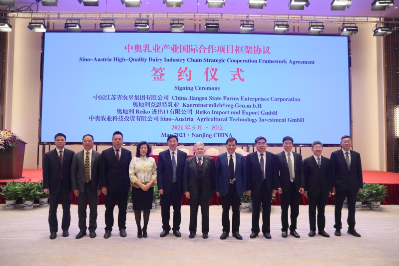 據(jù)悉,合作框架協(xié)議由江蘇農墾集團與奧地利克恩特乳業(yè)、Reiko奧地利公司、中奧農業(yè)科技投資有限公司等共同簽署,旨在發(fā)揮各自優(yōu)勢,共同推進中奧乳業(yè)合作。未來將在飼料生產、奶牛養(yǎng)殖、乳制品加工、乳制品行業(yè)研究等領域共同探索合作,建立高標準乳業(yè)產業(yè)鏈和國際乳品行業(yè)研究所。