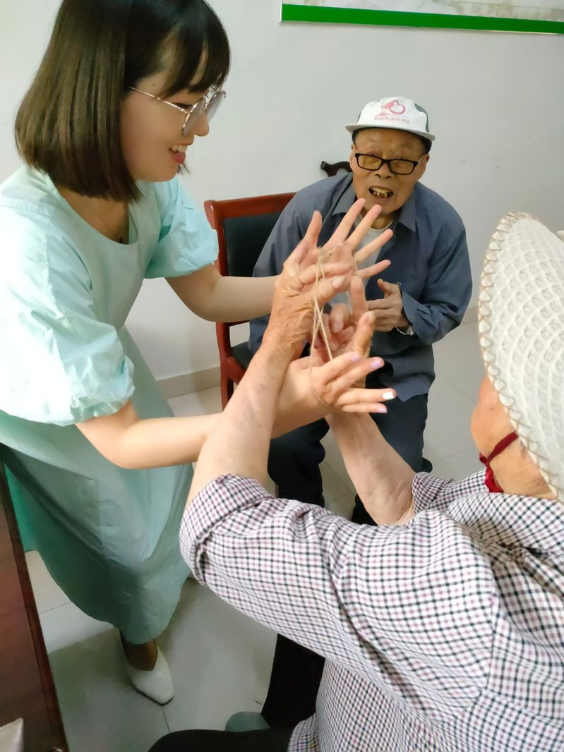 當(dāng)天下午,工作人員在中心與老人玩起了翻花繩、唱童謠、猜謎語(yǔ)等活動(dòng),用獨(dú)特的方式重溫兒時(shí)的美好時(shí)光,追憶童年。“時(shí)間好像一下子回到了50年前,真是沒(méi)想到都這把年紀(jì)了還能過(guò)六一,上次居然還上了那個(gè)抖音,家里人看了都說(shuō)外婆成明星了。”顧奶奶笑著眼睛瞇成一道線說(shuō)道?!拔覀兤綍r(shí)和小孩接觸,都是看他們玩。今天我們也成了主角,可以和你們一起玩,還給我們敲背捏腿,真是太高興了?!?/span>