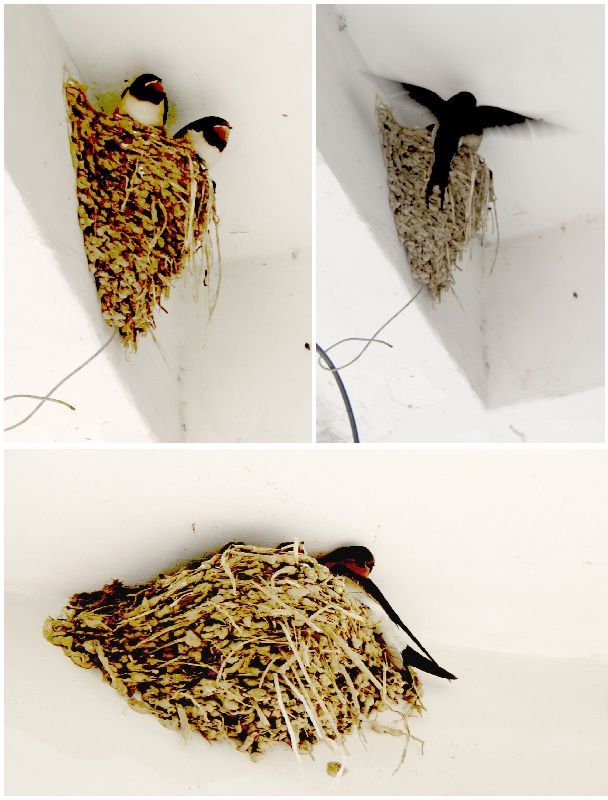 春天,燕子從南方飛來(lái),成對(duì)的燕子銜來(lái)泥草在屋檐下做起了小窩,初夏或仲夏就孵化出了小燕子,每天有一只燕子守窩,一只燕子飛出去覓食銜回來(lái)喂小燕子。小燕子等食時(shí)把頭伸出窩外,張著黃黃的小嘴嘰嘰喳喳叫著,就像一曲動(dòng)聽(tīng)的小曲,引得住戶(hù)和路人駐足聆聽(tīng)和觀望??蠢涎嘧觼?lái)回輕盈地飛舞,不時(shí)地停在窩前把所覓之食喂給小燕子,是一種享受,是一種陶醉。店主喜歡燕子在他的屋檐下做窩,說(shuō)是能招來(lái)財(cái)運(yùn),故不允許任何人破壞燕窩的。