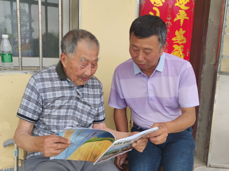 6月8日下午,當(dāng)《中國農(nóng)墾》第6期雜志送到農(nóng)場宣傳部門后,其中在文苑百花欄目上,刊登了農(nóng)場張躍兵寫的一篇《一名老兵的農(nóng)墾情懷》的人物通訊。為了讓已經(jīng)94歲高齡的農(nóng)場離休老干部張國裕在第一時間看到自己的經(jīng)歷故事,宣傳部門的同志立即將這本剛到的雜志,騎著摩托車交到了作者張躍兵和他的父親張國裕的手中。張國裕撫摸著這本雜志,指著張躍兵的名字開心地說:“張躍兵?!逼湫老驳谋砬檐S然紙上。