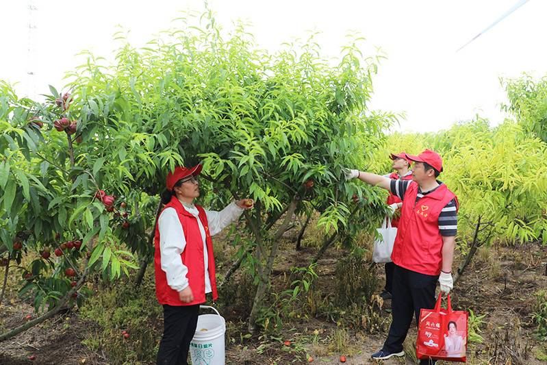 “今天來(lái)這里幫綠農(nóng)園公司摘桃子,我們就是要將學(xué)黨史、辦實(shí)事落實(shí)到實(shí)際行動(dòng)上。”“通過(guò)參加志愿活動(dòng),為企業(yè)發(fā)展出點(diǎn)力?!秉h員志愿者們說(shuō)。