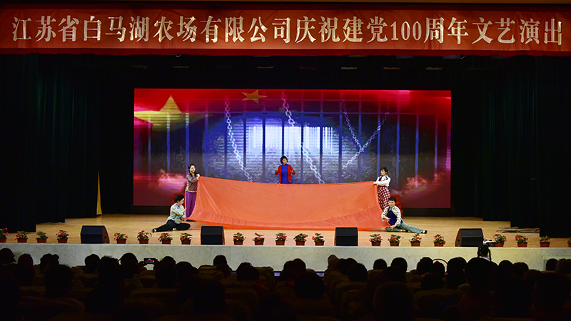 為慶祝中國(guó)共產(chǎn)黨成立100周年,回顧中國(guó)共產(chǎn)黨團(tuán)結(jié)帶領(lǐng)全國(guó)各族人民戰(zhàn)勝各種艱難險(xiǎn)阻、譜寫中華民族自強(qiáng)不息的光輝歷程,感悟中國(guó)共產(chǎn)黨歷經(jīng)百年始終不渝的初心使命,共同抒發(fā)在黨的堅(jiān)強(qiáng)領(lǐng)導(dǎo)下奮進(jìn)新時(shí)代的壯志豪情,讓廣大干部職工在紅色氛圍中學(xué)習(xí)黨史、展示風(fēng)采,推進(jìn)黨史學(xué)習(xí)教育和“四史”宣傳教育不斷走深走實(shí),6月29日下午,白馬湖農(nóng)場(chǎng)公司在職工會(huì)堂成功舉辦了“百年禮贊、紅心向黨 ”慶祝中國(guó)共產(chǎn)黨成立100周年文藝演出。