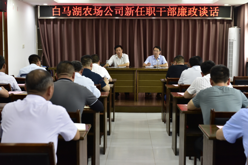 為切實落實全面從嚴治黨主體責任,提高新任職干部對黨風廉政建設(shè)重要性的認識,筑牢新任職干部廉潔自律的防線,7月2日下午,白馬湖農(nóng)場公司對40多名新提拔或崗位調(diào)整任新職干部開展集體廉政談話,黨委書記姚春華、紀委書記韓躍武分別進行談話。