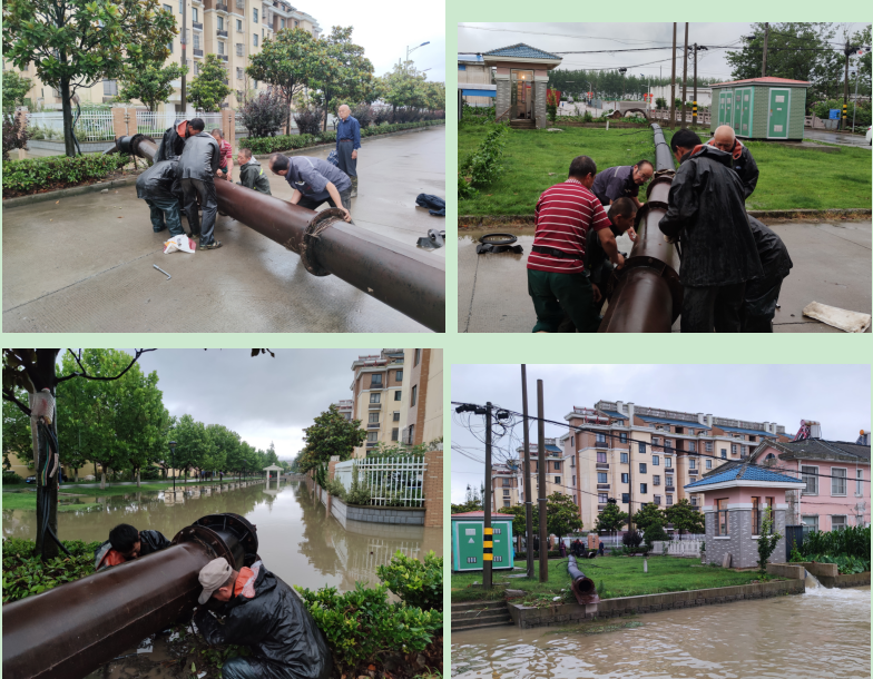 雖然此時小雨還在下,天上的云層還在翻滾,但有大家的齊心協(xié)力,居民們還是信心滿滿。最終水位也在大家的期盼下,漸漸褪去,農(nóng)場又恢復了平靜。圖為農(nóng)場社區(qū)的志愿服務小分隊在安裝臨時水泵時的鏡頭。