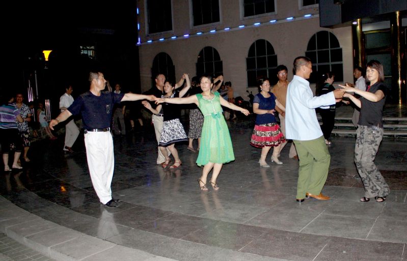 圖為職工在夜廣場翩翩起舞。