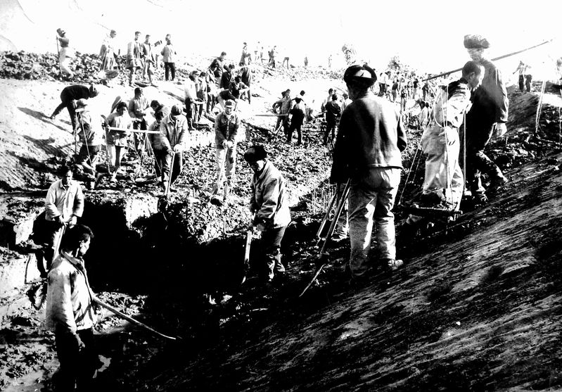 圖為當(dāng)年興修水利開挖河新中河的鏡頭