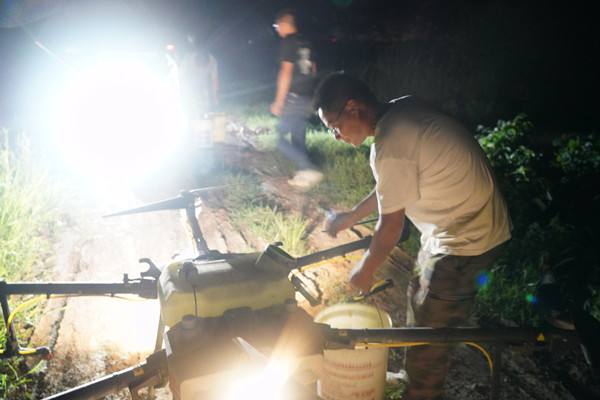 7月31日晚上22:20分,在邱上郢生產區(qū)四隊田頭,隊長楊明正和魏佳、金仁超一起在田間進行水稻病蟲防治,他們3人全部是在疫情防控值守工作完成后,利用休息時間進行田間管理,其中一人是接防控點零點的班,雖然值守防控點已經很辛苦,晚上進行病蟲防治田間蚊蟲叮咬的厲害,但他們沒有一句沒有怨言,隊長楊明說,晚上進行病蟲防治不耽誤白天的工作,關鍵時刻,他們工作不分晝夜,勇于奉獻,愛崗敬業(yè),在為三河疫情防控工作奉獻自我的同時,認真做好本職工作,他們值得我們學習。