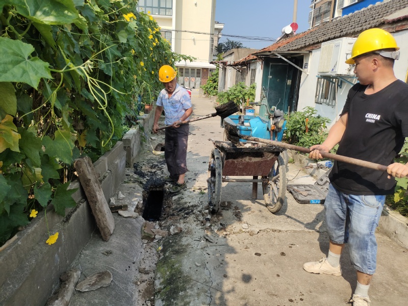 隨著時間的推移,溫度不斷升高,要疏通的下水道長近50米,但工人們沒有后退,他們趕時間、搶進(jìn)度,帶著悶熱的安全帽,即使汗流浹背也一刻都不懈怠。施工過程中,工人們先是用力地翹起蓋槽板,然后從堵塞的下水道里挖上來很多散發(fā)出惡臭、黑黢黢的淤泥,再用小車一車一車的將堵塞物運(yùn)走。他們不嫌累、不嫌臟,不方便施工時便將腿跪在地上,用工具將下水道清理得干干凈凈。即使在作業(yè)時,本著對蓋槽板等原材料保護(hù)優(yōu)先的原則,只能用工具將淤泥掏出來,一定程度上加大了施工的難度,增加了施工的時間,但工人們用飽滿的精神狀態(tài)和辛勤的汗水,切實為居民辦了一件實事。