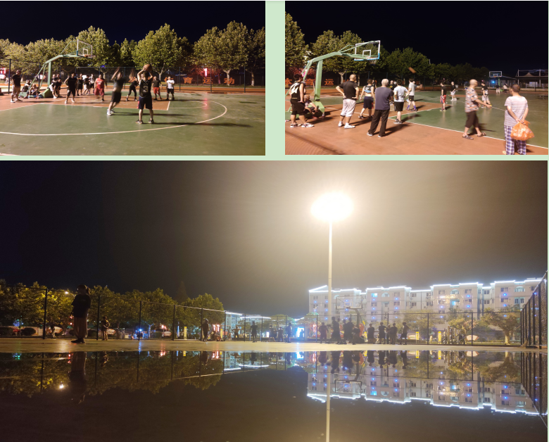 如今,天天火爆的籃球比賽成為淮海職工居民熱身運(yùn)動(dòng)的新常態(tài),就連農(nóng)場(chǎng)許多的學(xué)生甚至是孩童也拍著籃球進(jìn)場(chǎng)投籃,籃球健身的良好氛圍,正為淮海健康體育運(yùn)動(dòng)注入了新的活力。圖為夜幕下的籃球運(yùn)動(dòng)場(chǎng)上職工居民追逐時(shí)的鏡頭。