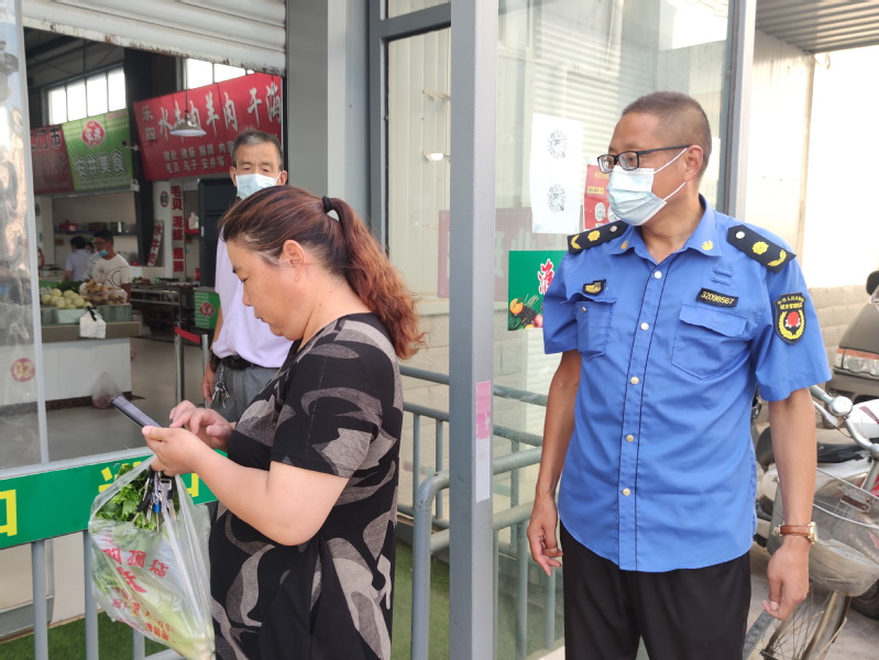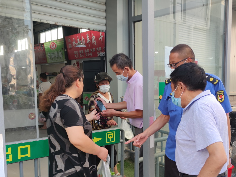 “還請(qǐng)你輸入下密碼。”說著,曹習(xí)生將手機(jī)遞到了買菜的居民手中。整個(gè)過程僅幾分鐘光景,就化解了居民沒戴口罩進(jìn)出菜市場(chǎng)的難題。