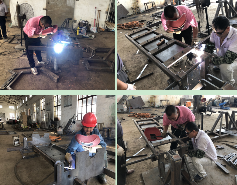 據(jù)農(nóng)機(jī)總站站長黃加青介紹,如果把全淮??煞N植的田埂等邊際空置田全部利用起來,這塊面積相當(dāng)可觀,會(huì)對當(dāng)年夏糧產(chǎn)量的再一次提升。我們現(xiàn)在本著對農(nóng)田側(cè)邊播種機(jī)進(jìn)行圖紙樣機(jī)的組裝,并在設(shè)計(jì)整改中加以完善,如取得進(jìn)一步成功后,將會(huì)面向全農(nóng)墾推廣淮海的創(chuàng)新成果,將邊際潛力發(fā)揮出最大的增產(chǎn)效應(yīng)。圖為農(nóng)機(jī)總站工人在車間內(nèi)焊接側(cè)邊播種機(jī)鏡頭。
