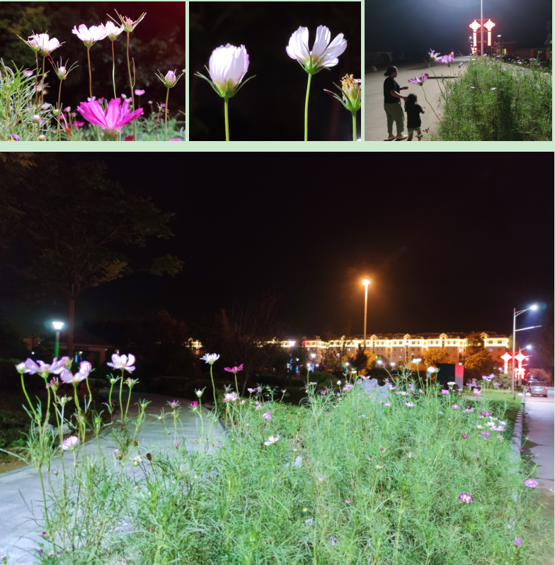 在淮海農(nóng)場(chǎng)醫(yī)院門前的健康路上,生長著約幾十米長的秋英花,白天盡顯嫵媚,成為健康路途中的一道別樣風(fēng)景,而到了夜晚在燈光的映襯下,秋英也就更具特色,像是一朵朵唯美的風(fēng)景,讓人流連中又不忍去碰它,生怕觸動(dòng)它那嬌嫩的肌膚。這些花朵與農(nóng)場(chǎng)大面積栽種的綠植不同,因?yàn)樗遣荼局参?,也就成為了農(nóng)場(chǎng)綠化家族中的新一景,吸引著人們駐足觀看,也讓美麗淮海增添了一處新的觀光地帶。