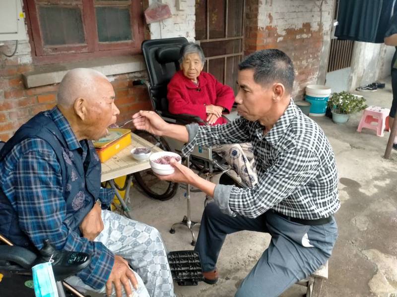 “天有不測風(fēng)云、人有禍福旦夕”,本來照顧一個癱瘓的父親,十幾年如一日就已經(jīng)足夠他忙碌的了,2015年70歲的老母親也患腦癱和心臟病,并伴有眼疾,視力幾乎失明。2019年由于眼睛視力低下,走路一不小心,又把腿摔斷了,造成生活不能自理,就這樣唐素強(qiáng)一個人一下子就承擔(dān)起兩位老人的照料工作,為了方便更好的照顧雙親,他就搬到父母的住處,他每天都要給父母雙親擦拭、按摩身體,洗腳、洗滌,平時老人會感到無聊,精神不振,唐素強(qiáng)就利用閑暇的時間陪著父母說話解悶,為了讓老人盡快康復(fù),自己從零學(xué)習(xí)康復(fù)方面的知識,挽扶老人進(jìn)行康復(fù)鍛煉,經(jīng)常用輪椅推著父親或母親外出,感受新鮮空氣,看看風(fēng)景,調(diào)節(jié)父母情緒。