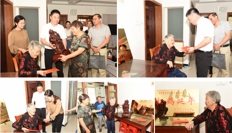 9月10日上午,淮海農(nóng)場有限公司副總經(jīng)理、工會主席戴學(xué)林和部門相關(guān)人員及社區(qū)民政部門人員一起,來到位于五岸新村的邱鳳英的家中,帶著慰問品和慰問金,并代表農(nóng)場公司黨委,向剛剛達到百歲的邱鳳英老人祝賀百歲生日,并向老人表示衷心的祝福和美好的祝愿。
