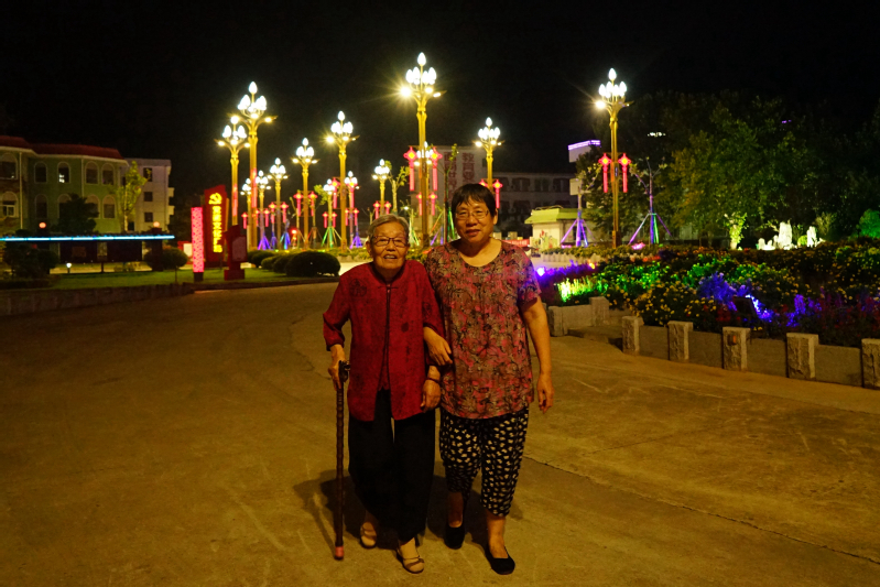 國慶節(jié)之夜,新洋鎮(zhèn)區(qū)彩燈閃爍,燈火輝煌,夜色迷人。一位95歲老太在家人的陪伴下喜滋滋地觀看新洋夜景:“農(nóng)場(chǎng)年年又變化,今年國慶的夜景更漂亮了!”