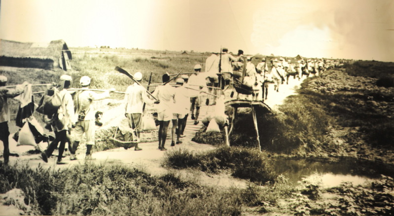 當(dāng)年農(nóng)場(chǎng)的冬天風(fēng)寒雪嘯,冷氣襲人,他們?cè)谔旌貎龅沫h(huán)境下敲冰挖泥、打壩戽水,嘴凍青了,腳凍麻了,沒有人下火線。連隊(duì)的生活供應(yīng),要買個(gè)新鮮蔬菜,少則跑二三十里,多則七八十里,他們用板車是一步一磕頭的拉回來;有的連隊(duì)長(zhǎng)期參加重體力活,糧食超支很多,事務(wù)長(zhǎng)只好買豆餅回來補(bǔ)充糧食。戰(zhàn)士們說的好:“困難如彈簧,看你強(qiáng)不強(qiáng),你強(qiáng)它就弱,你弱它就強(qiáng)?!睘榱思涌旃こ探ㄔO(shè),他們?yōu)樽约禾岢隽恕叭取保ū燃t軍、比志愿軍、比民工),“五不怕”(不怕天寒、不怕地凍、不怕淤泥、不怕下水、不怕工多)的戰(zhàn)斗口號(hào),戰(zhàn)勝了困難,發(fā)揮了中國(guó)人民解放軍艱苦奮斗的優(yōu)良傳統(tǒng)。在那艱苦而特殊的年代里,“建設(shè)美好的家園”,已成為他們共同的理想。