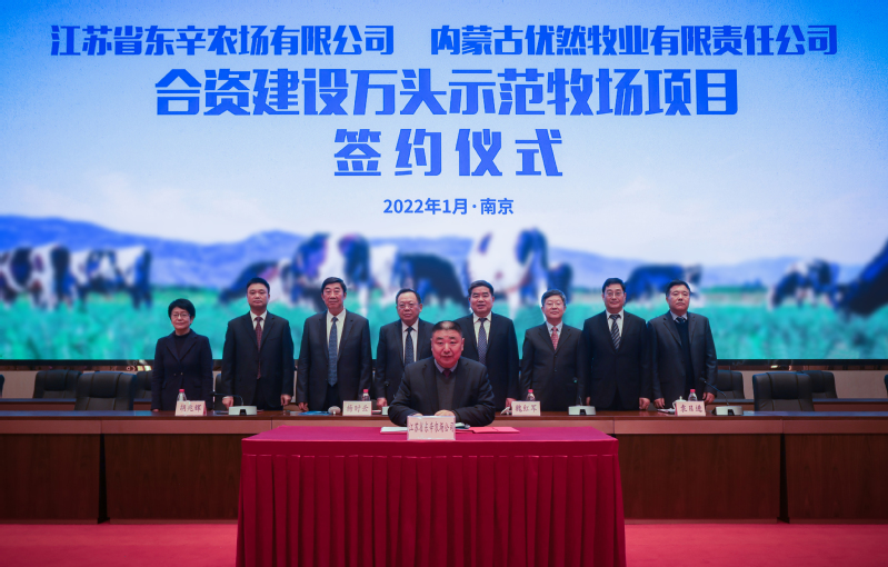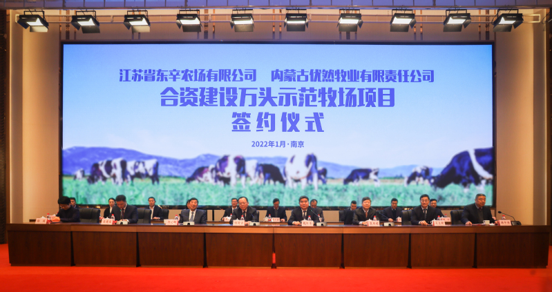 1月12日,東辛農(nóng)場(chǎng)公司與內(nèi)蒙古伊利集團(tuán)優(yōu)然牧業(yè)公司合資建設(shè)萬(wàn)頭示范牧場(chǎng)項(xiàng)目正式簽約。本次簽約儀式采用視頻會(huì)議形式進(jìn)行,省委農(nóng)辦主任、省農(nóng)業(yè)農(nóng)村廳廳長(zhǎng)楊時(shí)云,總畜牧獸醫(yī)師袁日進(jìn),集團(tuán)公司黨委書(shū)記、董事長(zhǎng)魏紅軍,總經(jīng)理胡兆輝,副總經(jīng)理姜建友、王立新,總法律顧問(wèn)吳以國(guó)、總經(jīng)理助理錢伯彬、董事會(huì)秘書(shū)孟亞平在南京出席儀式,伊利集團(tuán)董事長(zhǎng)潘剛,執(zhí)行總裁張劍秋,副總裁劉剛、晁德文在呼和浩特出席儀式。袁日進(jìn)、胡兆輝、張劍秋分別代表三方致辭,姜建友主持簽約儀式。