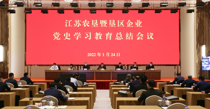 1月24日,江蘇農(nóng)墾暨墾區(qū)企業(yè)黨史學習教育總結(jié)會議在寧召開。會議深入學習貫徹習近平總書記重要論述重要指示和中央、全省、省國資委暨省屬企業(yè)黨史學習教育總結(jié)會議精神,全面總結(jié)墾區(qū)黨史學習教育取得的成效經(jīng)驗,對鞏固拓展黨史學習教育成果進行部署安排。集團公司黨委書記、董事長魏紅軍出席會議并講話,他強調(diào),要堅決貫徹落實習近平總書記關(guān)于黨史學習教育的重要指示和中央、省委決策部署,深入學習貫徹黨的十九屆六中全會、省第十四次黨代會精神,不斷鞏固拓展黨史學習教育成果,奮力譜寫“強富美高”新江蘇現(xiàn)代化建設(shè)的農(nóng)墾篇章,以奮進新征程、建功新時代的優(yōu)異成績迎接黨的二十大勝利召開。集團公司黨委副書記、總經(jīng)理胡兆輝主持會議,黨委副書記姚準明傳達中央、全省、省國資委暨省屬企業(yè)黨史學習教育總結(jié)會議精神,黨委委員、副總經(jīng)理姜建友,黨委委員、總會計師劉克英,黨委委員、紀委書記李旭東,黨委委員、副總經(jīng)理王立新出席會議。