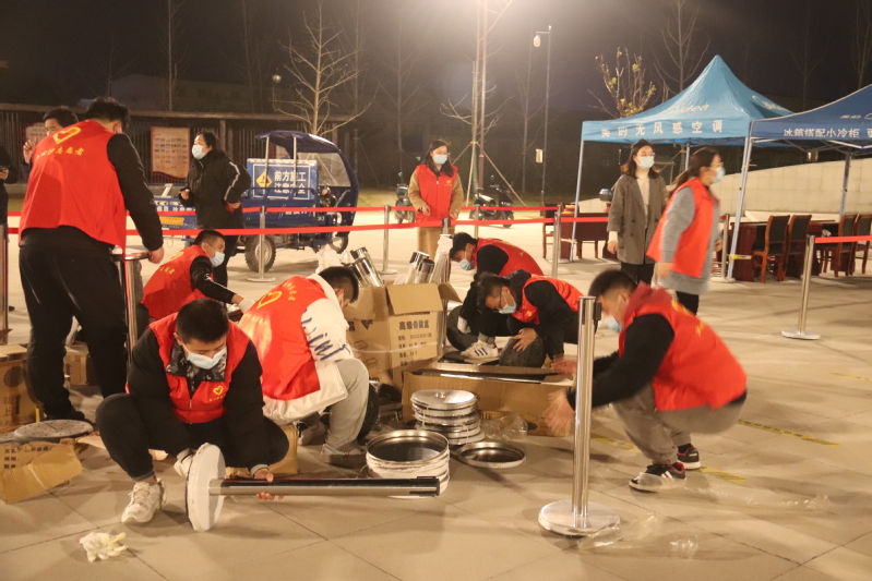 一名黨員就是一面旗幟。黨員志愿者們身穿紅馬甲,忙碌的身影,時(shí)時(shí)穿梭在機(jī)關(guān)門口、立新公園采樣點(diǎn)之間,成為夜空下一抹靚麗的風(fēng)景線。搬運(yùn)隔離欄,擺放桌椅,搭起遮陽篷,拉起警戒線,布設(shè)指引標(biāo)志,劃定一米線,配齊消毒液、醫(yī)療廢物垃圾桶,對(duì)現(xiàn)場(chǎng)布置進(jìn)行查漏補(bǔ)缺,只為居民群眾提供一個(gè)安全有序的核酸檢測(cè)環(huán)境。