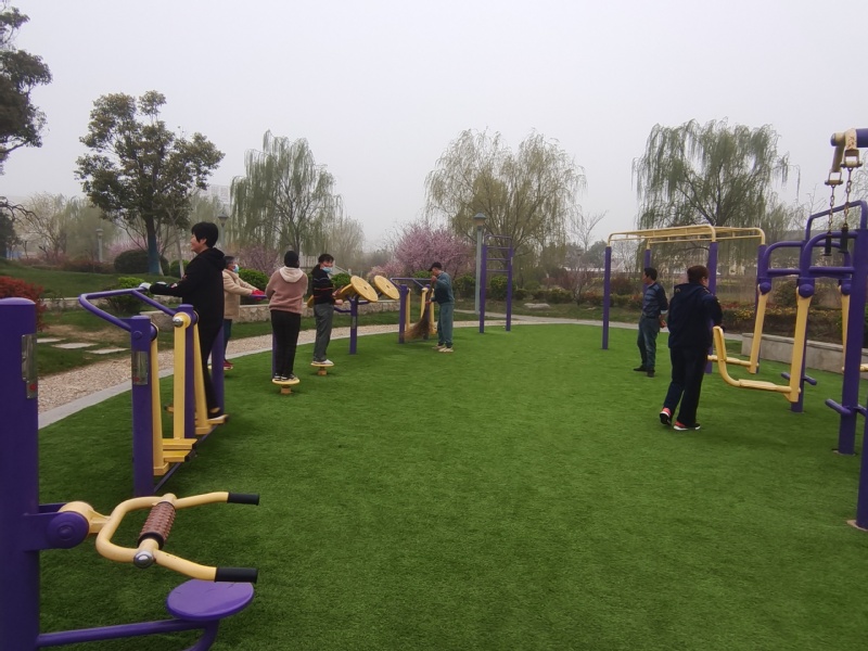 公園內(nèi)的健身器材,是晨練人喜歡光顧的地方,大家來晨練時(shí)會(huì)先后來到公園運(yùn)動(dòng)器材處進(jìn)行鍛煉。這里有一片綠色的塑料草坪,大大小小十多個(gè)運(yùn)動(dòng)器材,成為晨練人最好的健身之所。我幾次路過公園,都看見晨練人周家寶拿起大掃帚在運(yùn)動(dòng)器材等場地上打掃衛(wèi)生,一掃把一掃把的揮舞動(dòng)作,看得出是那樣的鏗鏘有力。同行的晨練人和他開玩笑說“看來負(fù)責(zé)這片衛(wèi)生的環(huán)衛(wèi)工人要付你工資啦。”周家寶卻樂呵呵地說道:“我這也是運(yùn)動(dòng)啊,還能給大家營造一個(gè)干凈舒適的鍛煉環(huán)境,一舉兩得呢!”