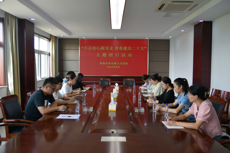 8月5日,淮海農場公司團委組織13余名團員青年在農場機關三樓會議室開展“不忘初心跟黨走青春建功二十大”主題團日活動,激勵和動員淮海團員青年把愛黨愛國熱情轉化為實際行動,感受百年黨史深厚的文化底蘊, 從黨的百年偉大奮斗歷程中汲取繼續(xù)前進的智慧和力量。